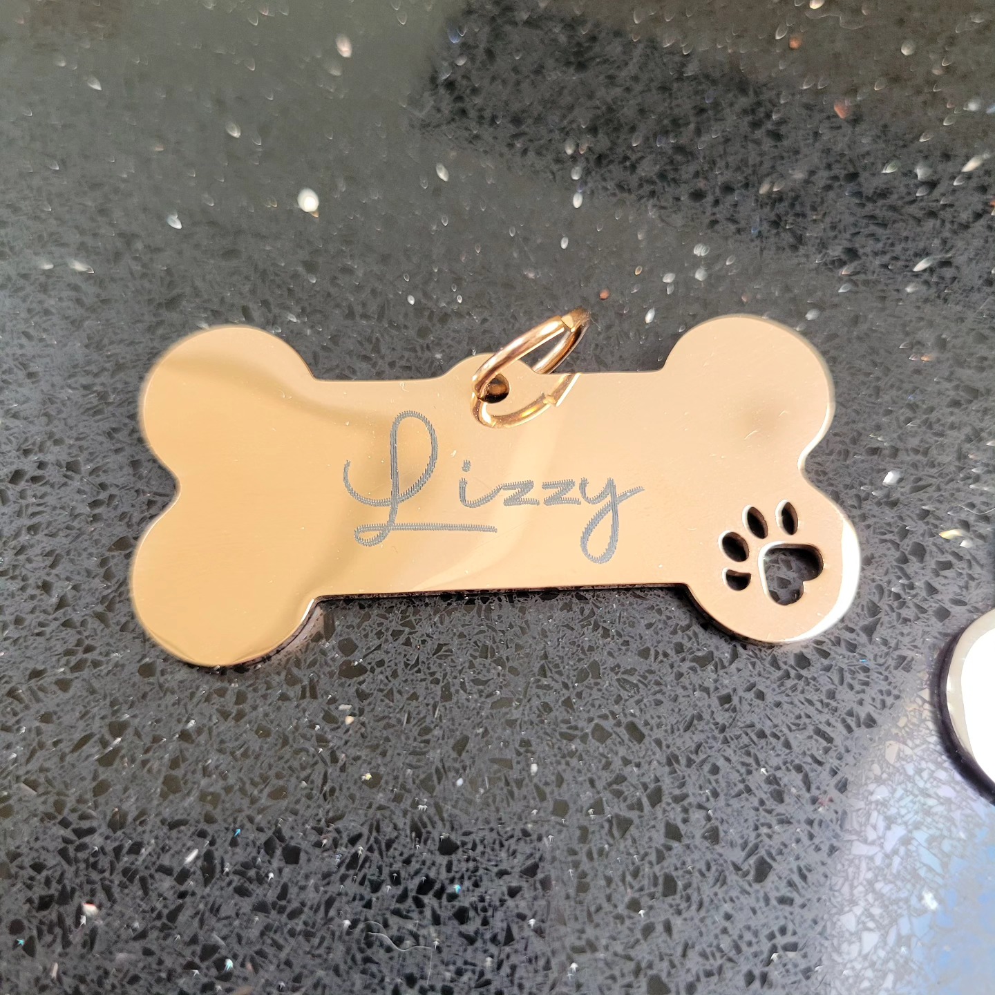 Zorg ervoor dat je hond nooit meer verloren loopt. Op de penning (5 x 3 cm) kan vooraan de naam en achteraan het telefoonnr of chipnr gegraveerd worden. Zo komt je hond steeds weer terecht.